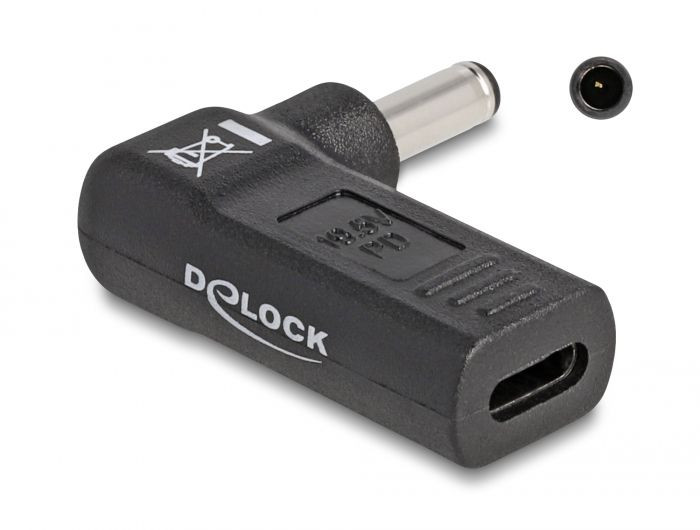 Notebook adapter, Adapter, DC, USB-C, Male/Female, Black, 90 fokos