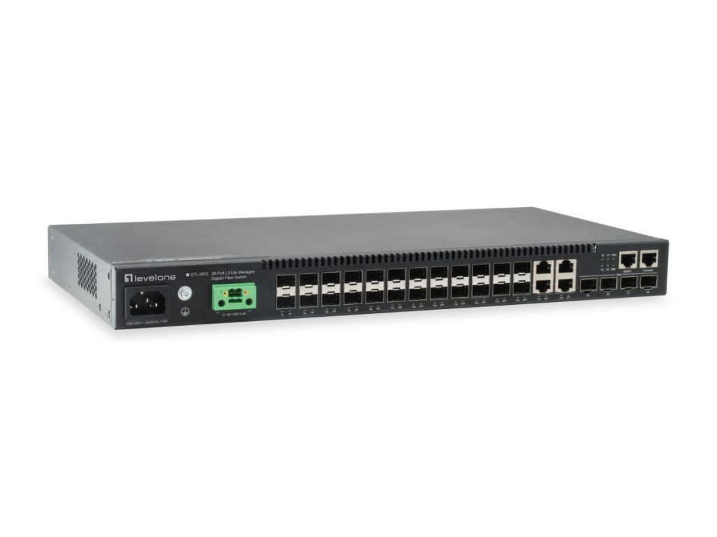 28xLAN port, LAN 10/100 Mbps, 24xGigabit LAN, 4x10GB/s LAN, SFP port 28, Menedzselhető, Rack, Uplink 10 Gbps
