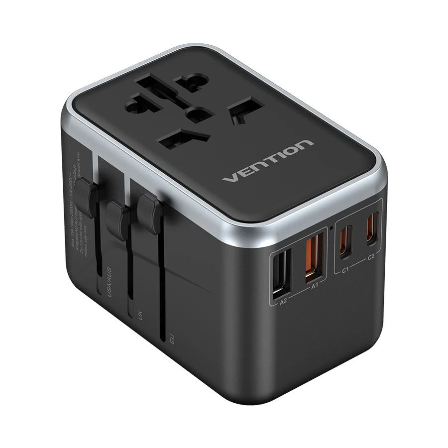 Vention 4-Port USB GaN Universal Travel Adapter Black